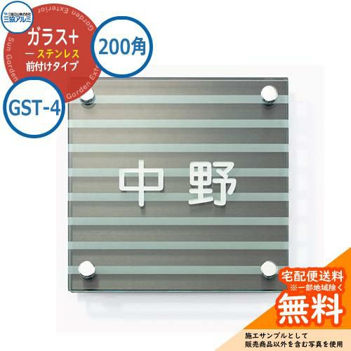 表札 ガラス おしゃれ ガラス+ステンレス 200角タイプ 正方形 GST-4 壁付け専用