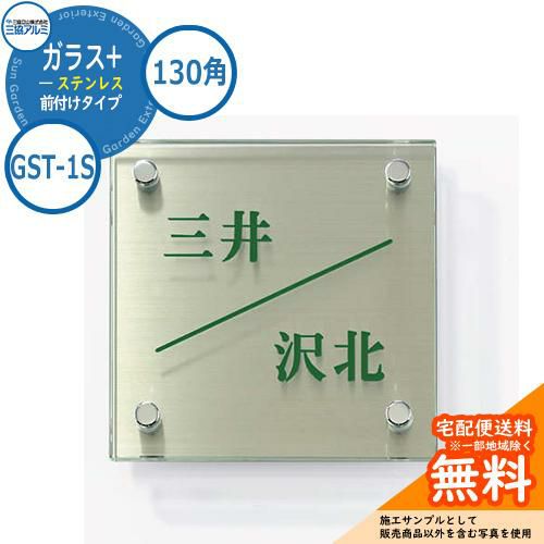 表札 ガラス おしゃれ ガラス+ステンレス 130角タイプ 正方形 GST-1S 壁付け・機能ポール兼用