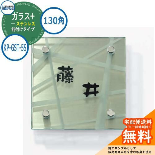表札 ガラス おしゃれ ガラス+ステンレス 130角タイプ 正方形 KP-GST-5S 機能ポール専用