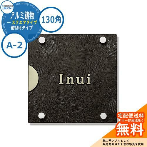 表札 鋳物 おしゃれ アルミ鋳物 スクエアタイプ 130角タイプ 正方形 A-2 壁付け・機能ポール兼用
