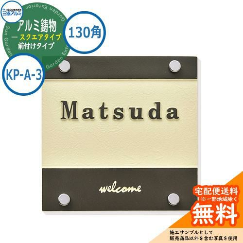 表札 鋳物 おしゃれ アルミ鋳物 スクエアタイプ 130角タイプ 正方形 KP-A-3 機能ポール専用