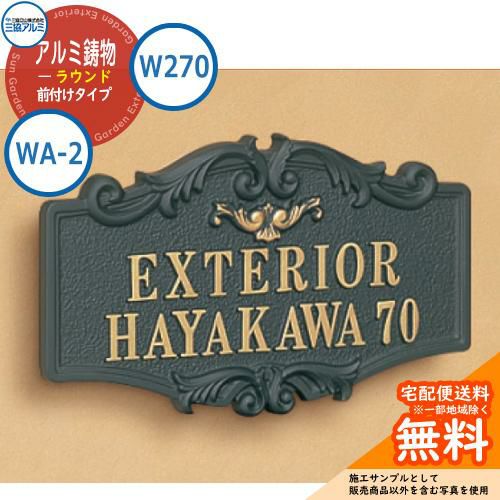 表札 鋳物 おしゃれ アルミ鋳物 ラウンド前付けタイプ WA-2 浮き文字タイプ