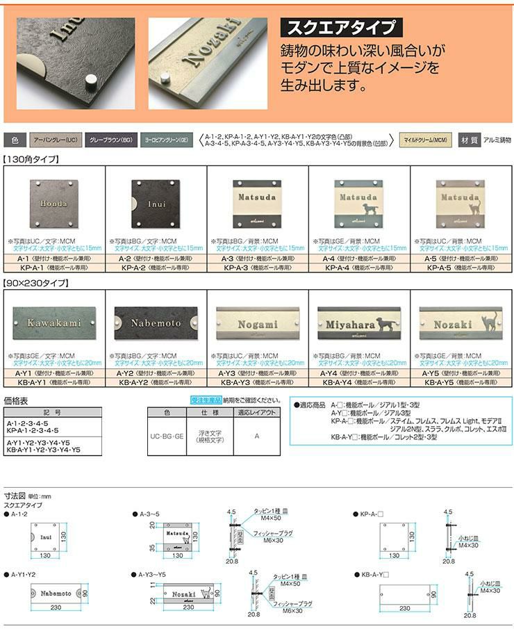 表札メーカーのパイオニアとして「表札は大切な家の顔。」を理念に多種多様な表札を製造している大手表札メーカーです。表札めーかーですが、表札だけではなくポストや機能門柱も人気です。