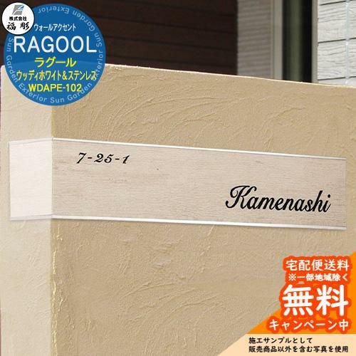 表札 ウォールアクセントサイン RAGOOL ラグール ウッディホワイト&ステンレス WDAPE-102