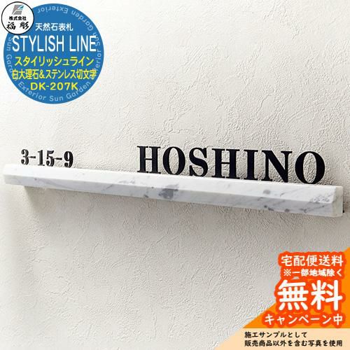 表札 天然石 STYLISH LINE スタイリッシュライン 白大理石&ステンレス切文字 DK-207K