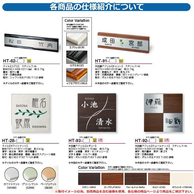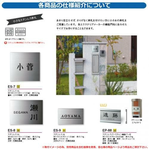 表札、看板をはじめ、郵便ポストや機能門柱などのエクステリア商品も製造する大手表札メーカーです。YKKap、三協アルミ、Panasonicの表札の製造も行っています。