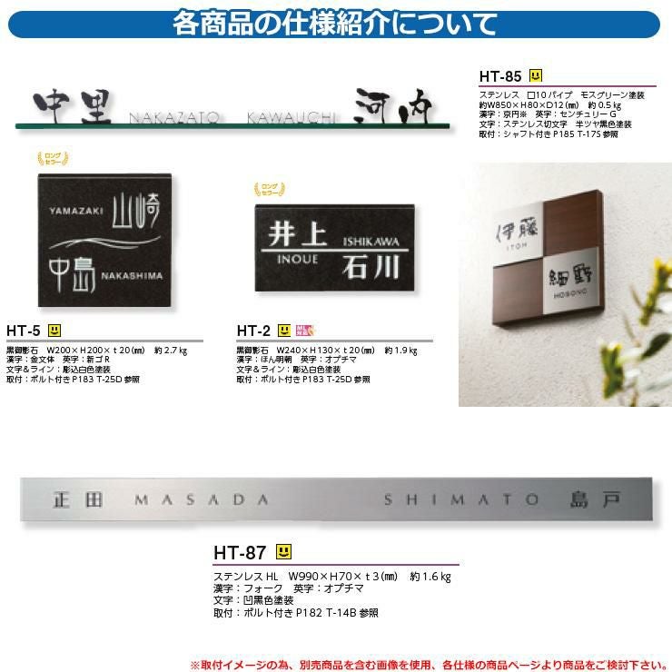 表札メーカーのパイオニアとして「表札は大切な家の顔。」を理念に多種多様な表札を製造している大手表札メーカーです。表札めーかーですが、表札だけではなくポストや機能門柱も人気です。
