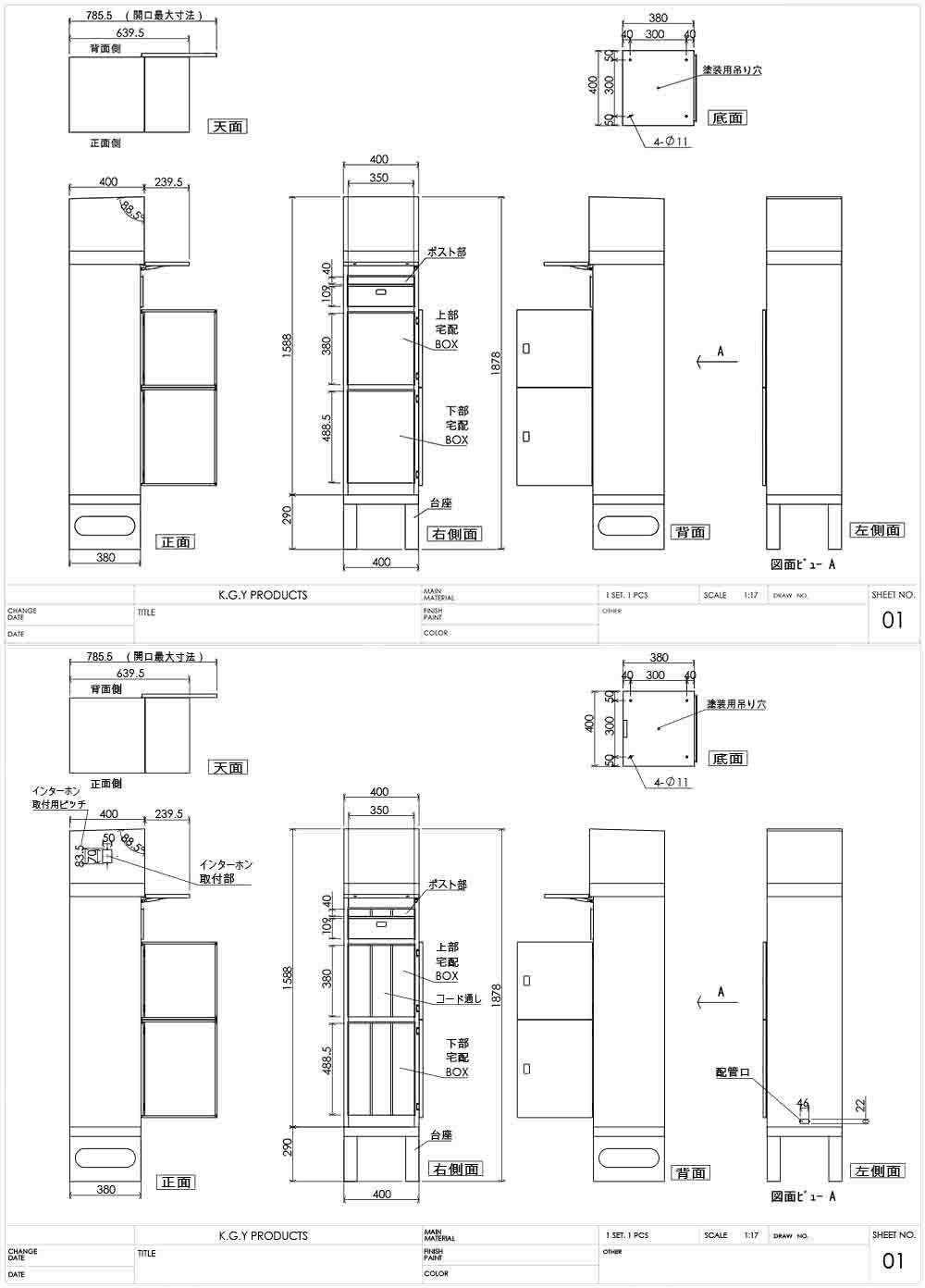 宅配ボックス コンボ ミドルタイプ本体 後出しFR