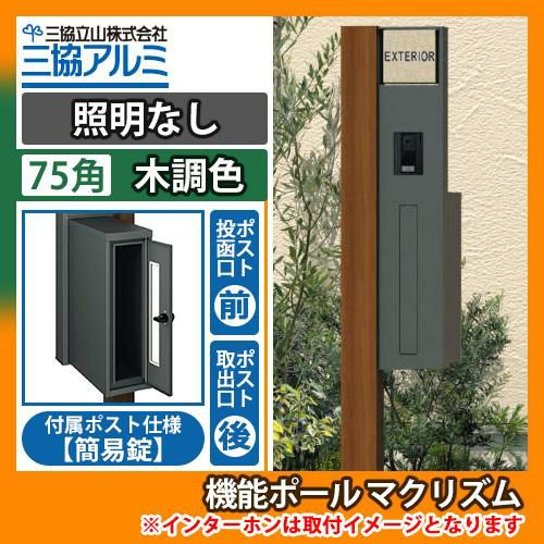 機能門柱 機能ポール マクリズム 照明なし【75角・木調色】 後出し(簡易錠)セット