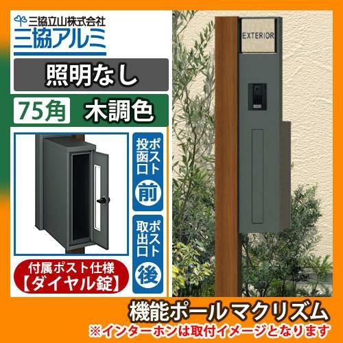 機能ポール マクリズムP 照明なし【75角・木調色】 ポスト:後出し(ダイヤル錠)