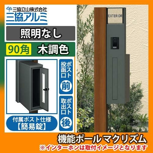機能門柱 機能ポール マクリズム 照明なし【90角・木調色】 後出し(簡易錠)セット