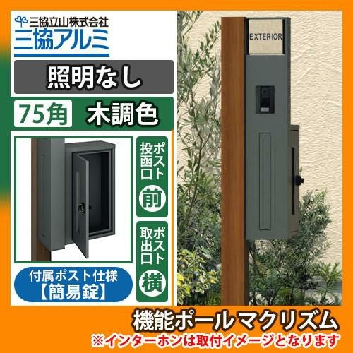 機能門柱 機能ポール マクリズム 照明なし【75角・木調色】 横出し(簡易錠)セット