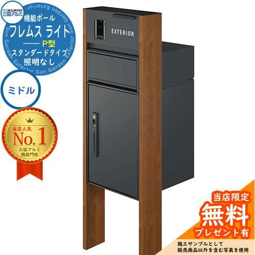 機能ポール フレムス Light スタンダードタイプ 本体:木調タイプ 照明なし 【P型】宅配ボックス:ミドル