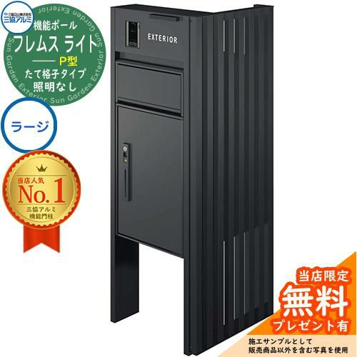 機能ポール フレムス Light サイドスクリーン付きタイプ たて格子タイプ 本体:形材タイプ サイドスクリーン:形材色 照明なし 【P型】宅配ボックス:ラージ