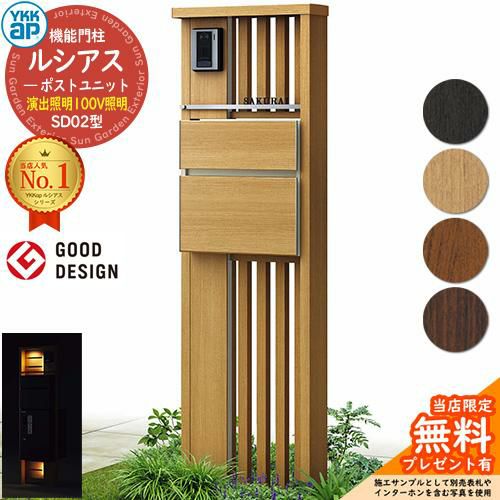 機能門柱 ルシアスポストユニット 門柱 ポスト 宅配ボックス YKK YKKap 郵便ポスト 郵便受け 宅配ポスト 機能ポール 一戸建て用 一体型 LED