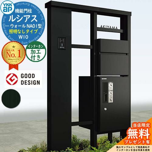 YKKap 機能門柱 ルシアス ウォールNA01型 W10 照明なしタイプ インターホン加工付き