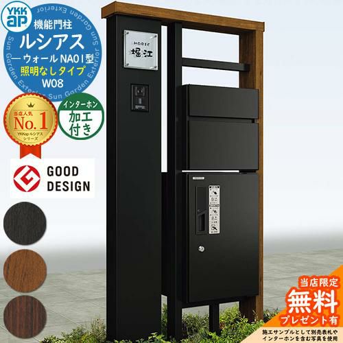 YKKap 機能門柱 ルシアス ウォールNA01型 W08 照明なしタイプ インターホン加工付き