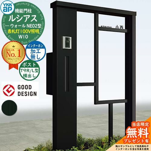 YKKap 機能門柱 ルシアス ウォールNE02型 W10 表札灯タイプ(100V照明) T9R(L)型セット