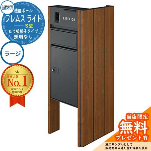 門柱 ポスト 機能ポール 機能ポール フレムス Light サイドスクリーン付きタイプ たて板格子タイプ 本体:木調色 サイドスクリーン:木調色 照明なし 【S型】宅配ボックス:ラージ