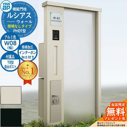 YKKap 機能門柱 ルシアス ウォールPH01型 W08 照明なしタイプ T9型・宅配ボックスセット
