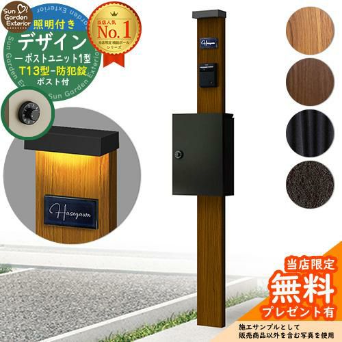 機能門柱 デザインポストユニット1型 照明付き(100V照明) T13型ポスト(防犯錠)セット
