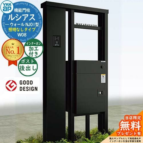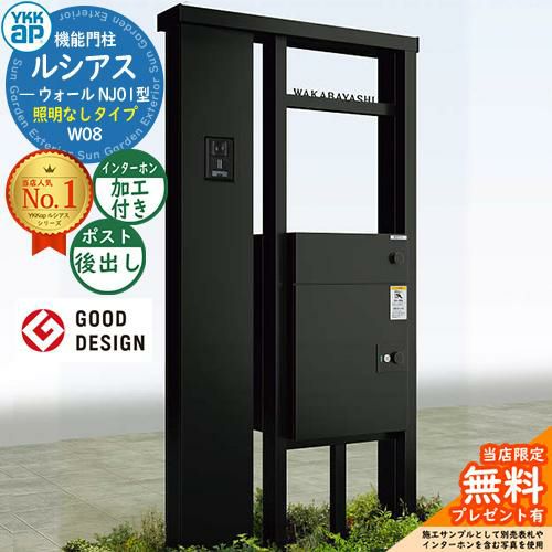 YKKap 機能門柱 ルシアス ウォールNJ01型 W08 照明なしタイプ インターホン加工付き