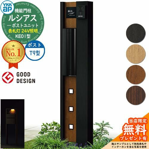 YKKap 機能門柱 ルシアス ポストユニットKE01型 表札灯タイプ(24V照明) T9型セット