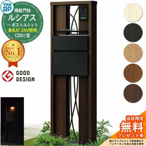 セット内容 ■ルシアスポストユニットCD01型 表札灯タイプ(24V照明) 本体(木調色)※R仕様・L仕様有
