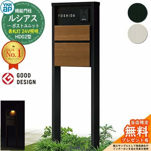 YKKap 機能門柱 ルシアス ポストユニットHD02型 表札灯タイプ(24V照明) T10型セット