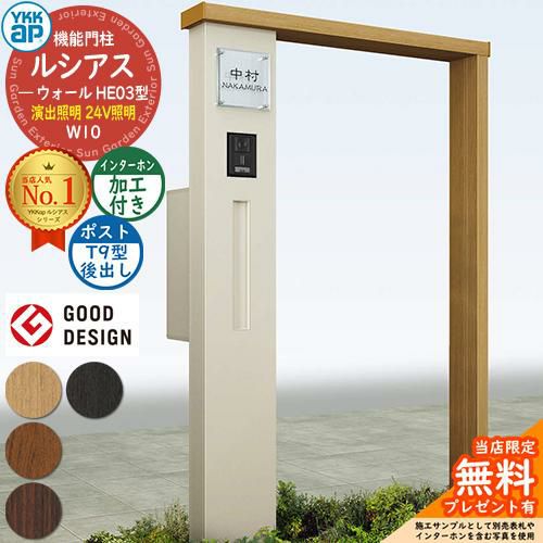 YKKap 機能門柱 ルシアス ウォールHE03型 W10 演出照明タイプ(24V照明) T9型セット