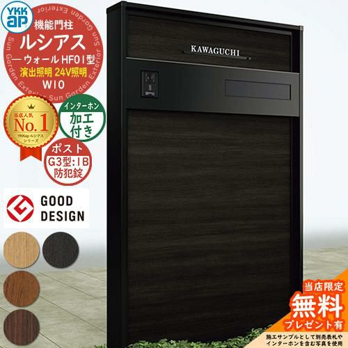 YKKap 機能門柱 ルシアス ウォールHF01型 W10 演出照明タイプ(24V照明) G3型 1B(防犯錠)セット