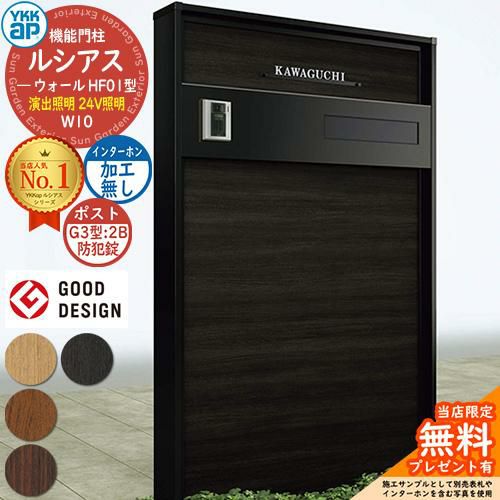 YKKap 機能門柱 ルシアス ウォールHF01型 W10 演出照明タイプ(24V照明) G3型 2B(防犯錠)セット