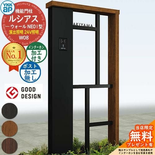 YKKap 機能門柱 ルシアス ウォールNE01型 W08 演出照明タイプ(24V照明)