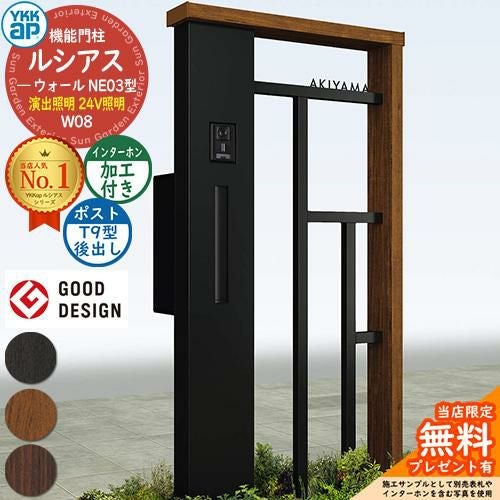 YKKap 機能門柱 ルシアス ウォールNE03型 W08 演出照明タイプ(24V照明) T9型セット