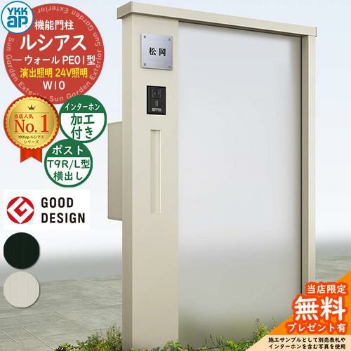 YKKap 機能門柱 ルシアス ウォールPE01型 W10 演出照明タイプ(24V照明) T9R(L)型セット