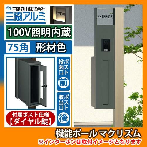 機能ポール マクリズムP 100V照明内蔵【75角・形材色】 ポスト:後出し(ダイヤル錠)