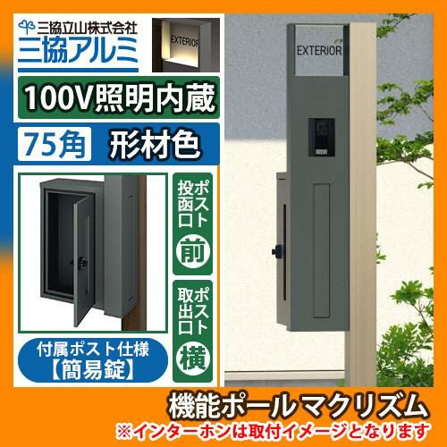 機能ポール マクリズムP 100V照明内蔵【75角・形材色】 ポスト:横出し(簡易錠)