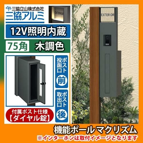機能ポール マクリズムP 12V照明内蔵【75角・木調色】 ポスト:後出し(ダイヤル錠)