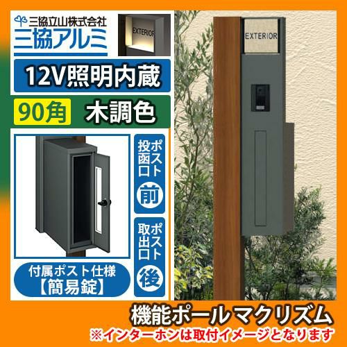 機能門柱 機能ポール マクリズム 12V照明内蔵【90角・木調色】 後出し(簡易錠)セット