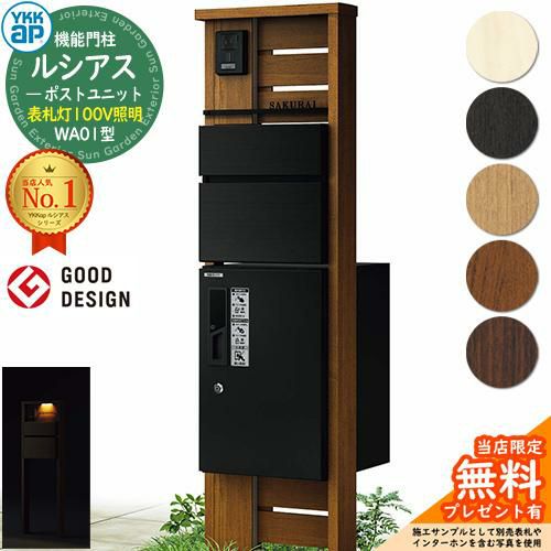 YKKap 機能門柱 ルシアス ポストユニットWA01型 表札灯タイプ(100V照明)