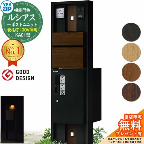 YKKap 機能門柱 ルシアス ポストユニットKA01型 表札灯タイプ(100V照明)
