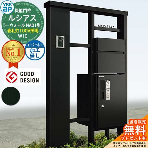 YKKap 機能門柱 ルシアス ウォールNA01型 W10 表札灯タイプ(100V照明) インターホン加工なし