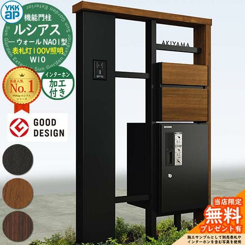 YKKap 機能門柱 ルシアス ウォールNA01型 W10 表札灯タイプ(100V照明) インターホン加工付き
