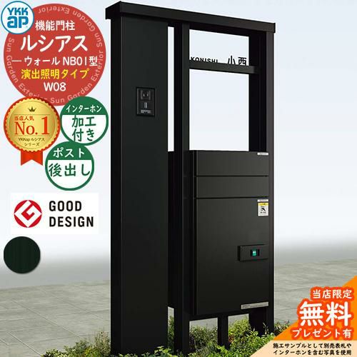 YKKap 機能門柱 ルシアス ウォールNB01型 W08 演出照明タイプ インターホン加工付き