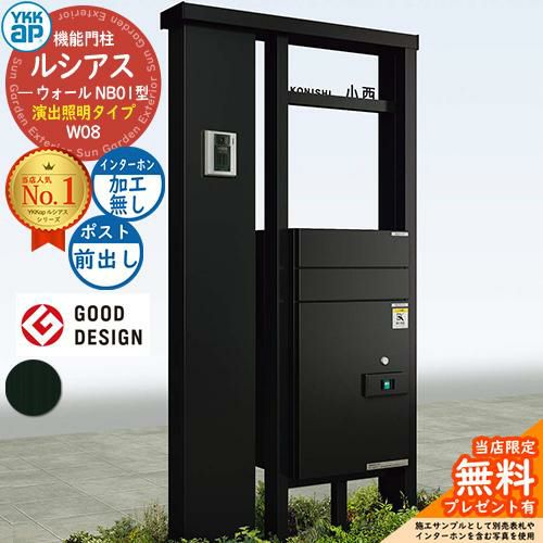 YKKap 機能門柱 ルシアス ウォールNB01型 W08 演出照明タイプ インターホン加工なし