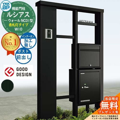 YKKap 機能門柱 ルシアス ウォールNC01型 W10 表札灯タイプ インターホン加工なし