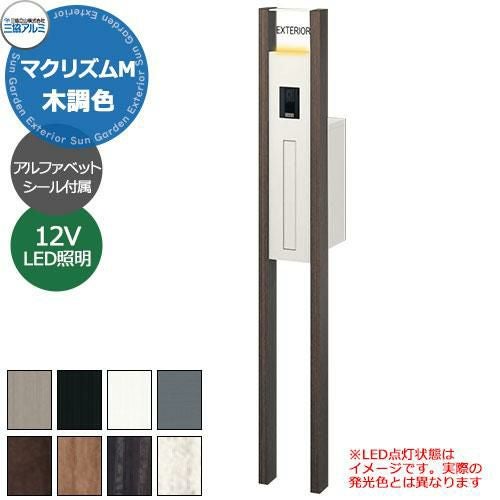 機能門柱 機能ポール マクリズムM独立仕様 木調色 本体+ポスト+DC12V照明セット+アルファベットシール付き