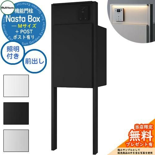 宅配ボックス 一戸建て用 大容量 Nasta Box + POST 門柱タイプ LED照明:付き 宅配ボックス:Mサイズ 標準色 支柱:マットブラック 前入前出