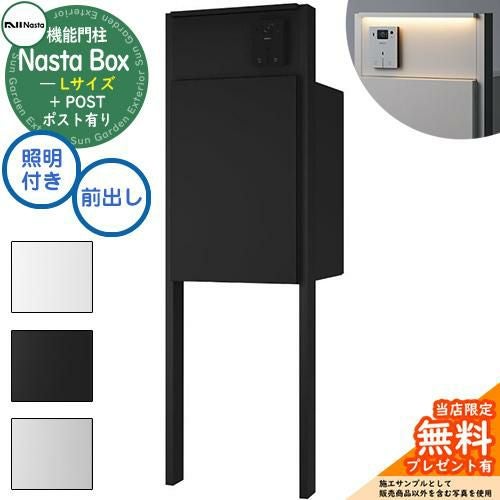 宅配ボックス 一戸建て用 大容量 Nasta Box + POST 門柱タイプ LED照明:付き 宅配ボックス:Lサイズ 標準色 支柱:マットブラック 前入前出