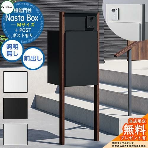 宅配ボックス 一戸建て用 大容量 Nasta Box + POST 門柱タイプ LED照明:無し 宅配ボックス:Mサイズ 標準色 支柱:木目色 前入前出